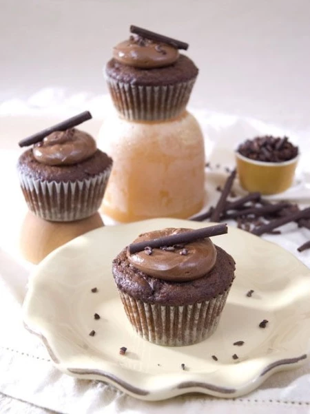 Με ένα μαχαίρι καλύπτουμε τα cupcakes με το frosting, και γαρνίρουμε με σοκολατένια flakes ή σοκολατένια πουράκια.