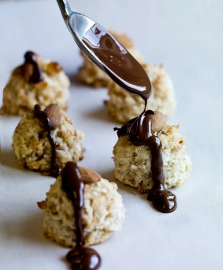 Χρησιμοποιώντας ένα κουτάλι ρίχνουμε λίγη σοκολάτα πάνω στα μπισκότα. Τα αφήνουμε μέχρι η σοκολάτα να γίνει σκληρή. Αν δεν τα σερβίρετε αμέσως, αφήστε τα σε θερμοκρασία δωματίου σε τάπερ για το πολύ μία εβδομάδα.