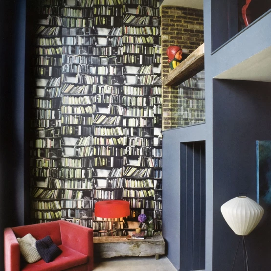 Δώσε στο καθιστικό σου σοφιστικέ άποψη και απόκτησε εύκολα μια busy βιβλιοθήκη μεγάλων διαστάσεων. Μπορεί όποιος πηγαίνει κοντά να καταλαβαίνει ότι πρόκειται για ταπετσαρία, η εντύπωση όμως είναι ίδια μιας αληθινής βιβλιοθήκης.