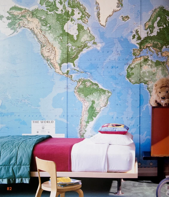 Αν το παιδί σου είναι αγόρι επένδυσε τον τοίχο του δωματίου του με ταπετσαρία άτλαντα. Είναι στυλάτη λύση, εξάπτει τη φαντασία και ο μικρός δεν θα ξανακάνει ποτέ λάθος στη γεωγραφία.
