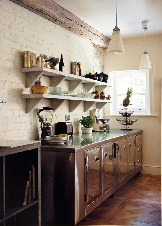 Το χαρακτηριστικό κόκκινο τούβλο που συναντάμε στο εσωτερικό των βρετανικών σπιτιών στην μοντέρνα εκδοχή του βάφεται λευκό και γίνεται το ιδανικό φόντο για μια modern english κουζίνα. Το τούβλο και η πέτρα μόλις βάφονται λευκά αυτόματα δίνουν πιο ανάλαφρο αποτέλεσμα.