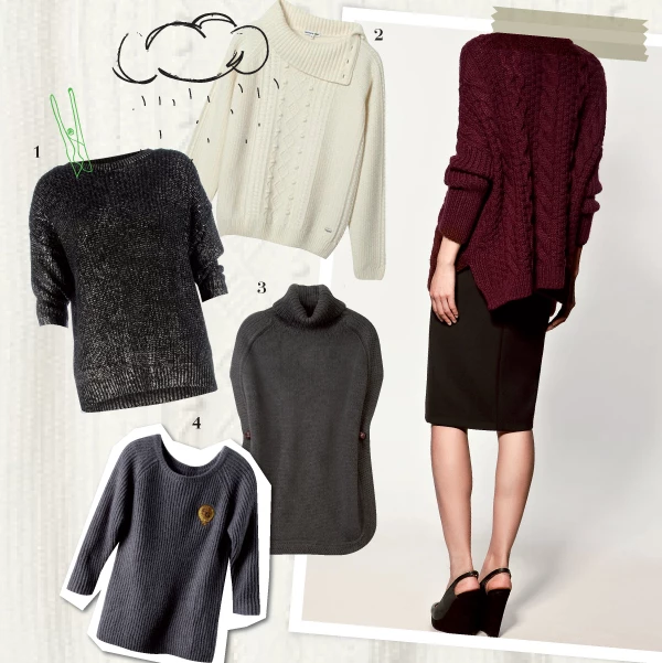 1. Πουλόβερ 41€ Dorothy Perkins, 2. Πουλόβερ Lacoste, 3. Πουλόβερ-κάπα Paul & Joe Sister 158.40€, mywardrobe.com 4. Πουλόβερ 53.90 La Redoute (με τηλεφωνική παραγγελία τηλ. 210- 8107000) και 5. (στη μεγαλη φωτογραφία) πουλόβερ με χοντρή πλέξη 49.95€ από το Zara