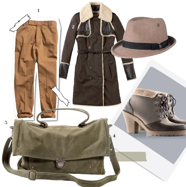 1. Παντελόνι H&M, 2. Kαμπαρτίνα Patricia Pepe, 3. Kαπέλο 39€, Accessorize (210-3640460), 4. Mποτίνια 39.95€ H&M, 5. Τσάντα 86€, La Redoute (με τηλεφωνική παραγγελία τηλ. 210- 8107000)