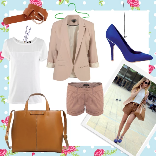 1. Ζώνη Τally Weijl 4,95 ευρώ 2. Λευκό T-shirt H&M 9,95 ευρώ 3. Μπλέιζερ Topshop 85.00 ευρώ 4. Μπλε γόβες Stradivarius 35,95 ευρώ 5. Σορτς Tally Weijl 12,95 ευρώ 6. Τσάντα δερμάτινη shopper Zara 35,95 ευρώ