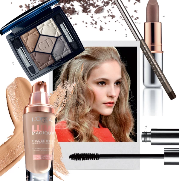 1. Yγρό μέικαπ Lumi Magique, L'Oreal. 2. Σκιές ματιών 5 Couleurs No