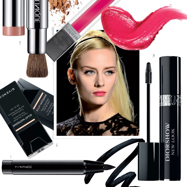 3. Ρουζ με ενσωματομένο πινέλο Quick Blush Hurry Honey, Clinique. 4. Λιπγκλός Phyto-Lip Gloss Νο 04 Fushia, Sisley.5. Mάσκαρα Diorshow New Look, Dior.