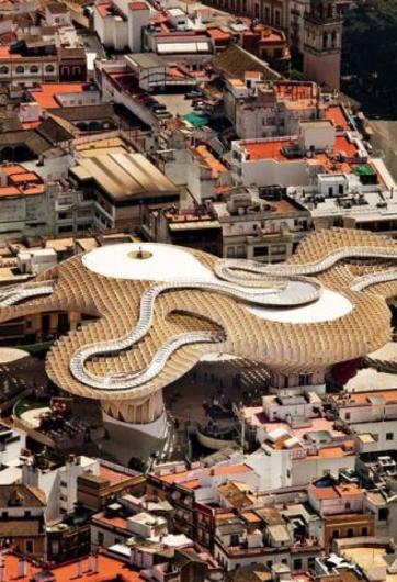 Αυτό το παράξενο κατασκεύασμα που μοιάζει με υπέργεια πέργκολα είναι δημιουργία του αρχιτεκτονικού γραφείου J. Mayer H. Architects. Προέκυψε όταν η δημοτική αρχή ανακάλυψε αρχαία κάτω από την Plaza de la Encarnación της Σεβίλλης προσπαθώντας να κατασκευάσει υπόγειο πάρκινγκ. Αντί γι' αυτό τελικά προέκυψε το Metropol Parasol, με μήκος 153 μέτρα που διαθέτει από αρχαιολογικό μουσείο μέχρι εστιατόρια.