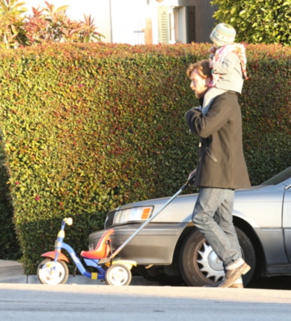 Ο διάσημος ηθοποιός Γιούαν ΜακΓκρέγκορ κουβαλάει την μόλις ενός έτους κόρη του, Ανούκ, στους ώμους του κάνοντας μια ωραία βόλτα στο Λος Άντζελες.