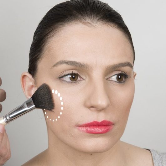Τα ζυγωματικά σου έχουν ανασηκωθεί. Θυμήσου: το μυστικό είναι η λάμψη να ξεκινάει εκεί που τελειώνει το ρουζ κι ενά κάνεις ένα ελαφρύ blending (μίξη) ώστε να μην είναι ξεκάθαρο από που ξεκινάει το ένα προϊόν και που σταματάει το άλλο.