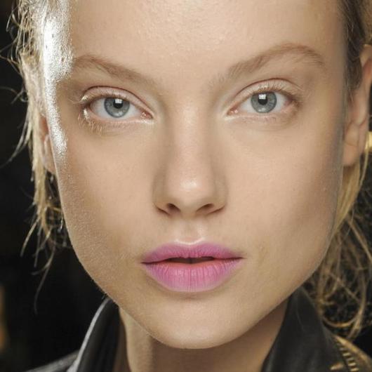 Στον οίκο Burberry είδαμε ματ κραγιόν σε τριανταφυλλί απόχρωση που έκανε το τέλειο contrast με την shiny επιδερμίδα! Για να το αντιγράψεις χτένισε τα φρύδια σου ανοδικά, άπλωσε μια μόνο στρώση μάσκαρα στις άνω βλεφαρίδες και μην βάλεις καν ρουζ!