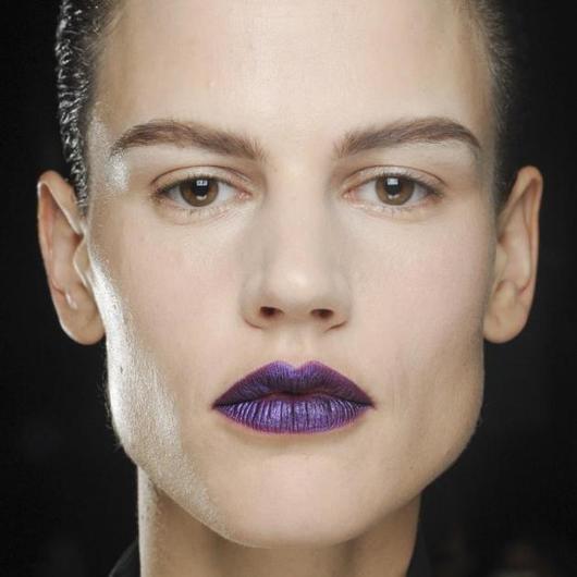 Φωτεινό μοβ κραγιόν και πολύ καθαρή επιδερμίδα. Με άλλα λόγια, καν΄το όπως ο οίκος Dries Van Noten.