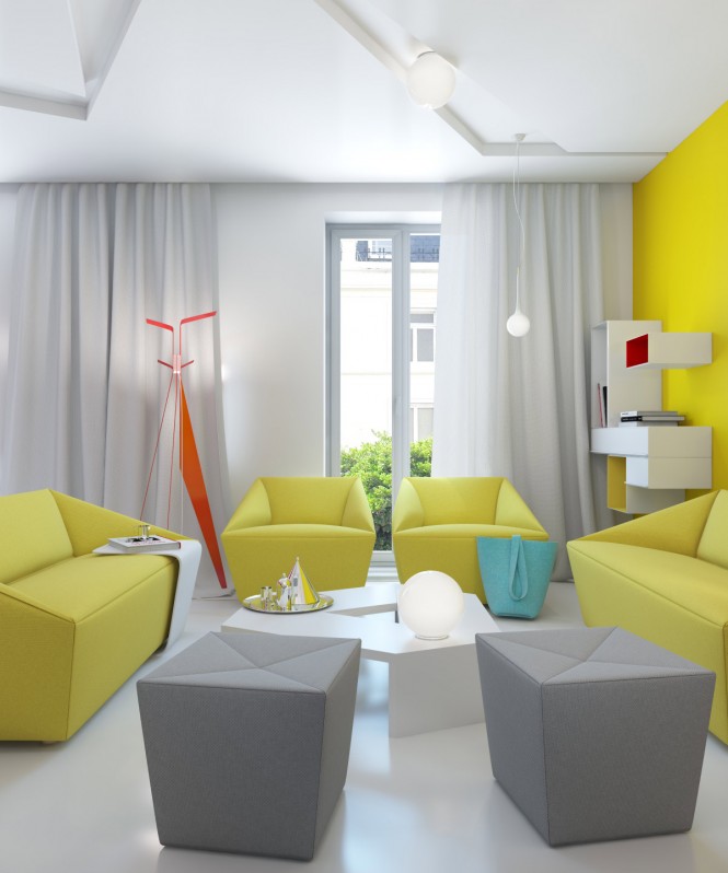 Ο καλλιτέχνης αναφέρει: "Η ιδέα είναι να κάνετε ένα πολύχρωμο και φωτεινό εσωτερικό, χωρίς να το παρακάνετε με τα χρώματα, λευκό εσωτερικό με μικρές