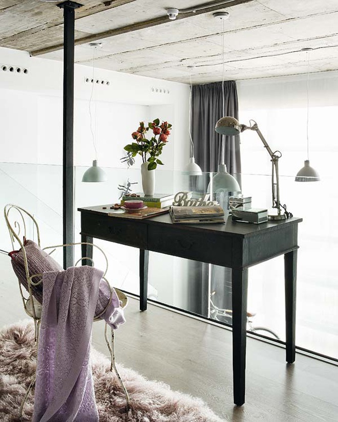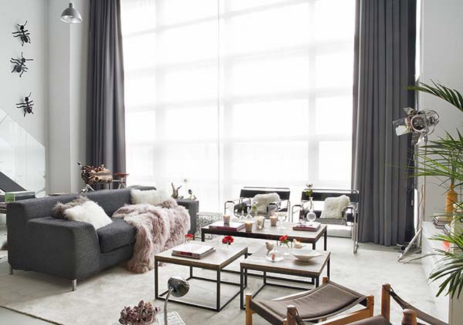 παράθυρα από γυαλί, ψηλά ταβάνια, ανοιχτοί χώροι με οπλισμό σκυροδέματος